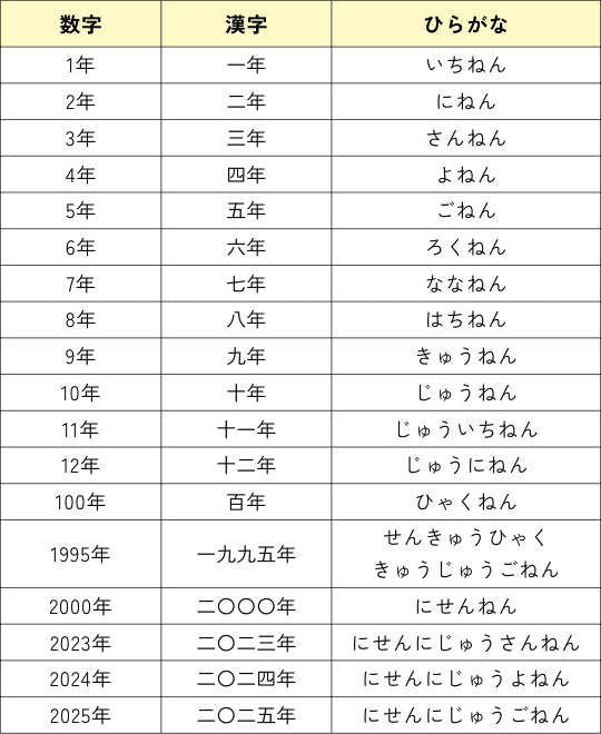 - "年 (nen)" adalah kata bilangan yang umum digunakan untuk menghitung tahun dan untuk menentukan tanggal.
