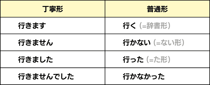 - 普通形は、友だちや家族の間で使われることが多い。一方で、丁寧形(ます形)は、ビジネスやその他フォーマルな状況で使われることが多い。