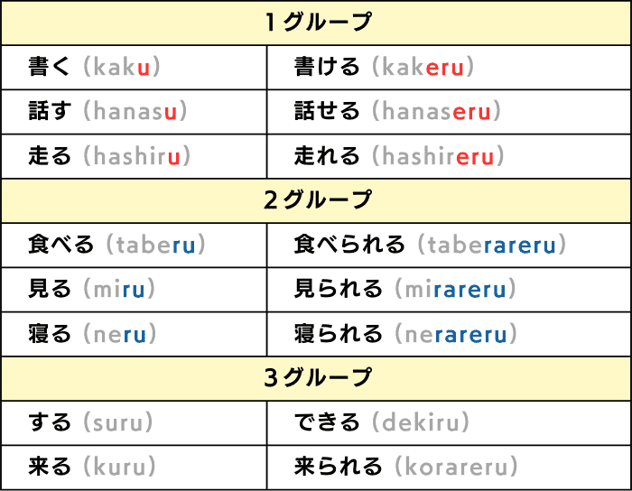 - ในการสร้างรูปสามารถของคำกริยา ให้ปฏิบัติตามกฎสามข้อต่อไปนี้ขึ้นอยู่กับกลุ่มคำกริยา: