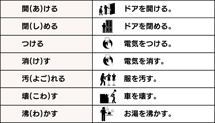 - 表示会对动作主体以外的物体或人造成影响,需要接宾语的动词。